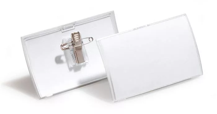 Névkitűző, csíptetővel és tűvel, PP, 40x75 mm, DURABLE "CLICK FOLD"