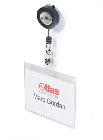 Névkitűző, kihúzható tartóval, 60x90 mm, DURABLE