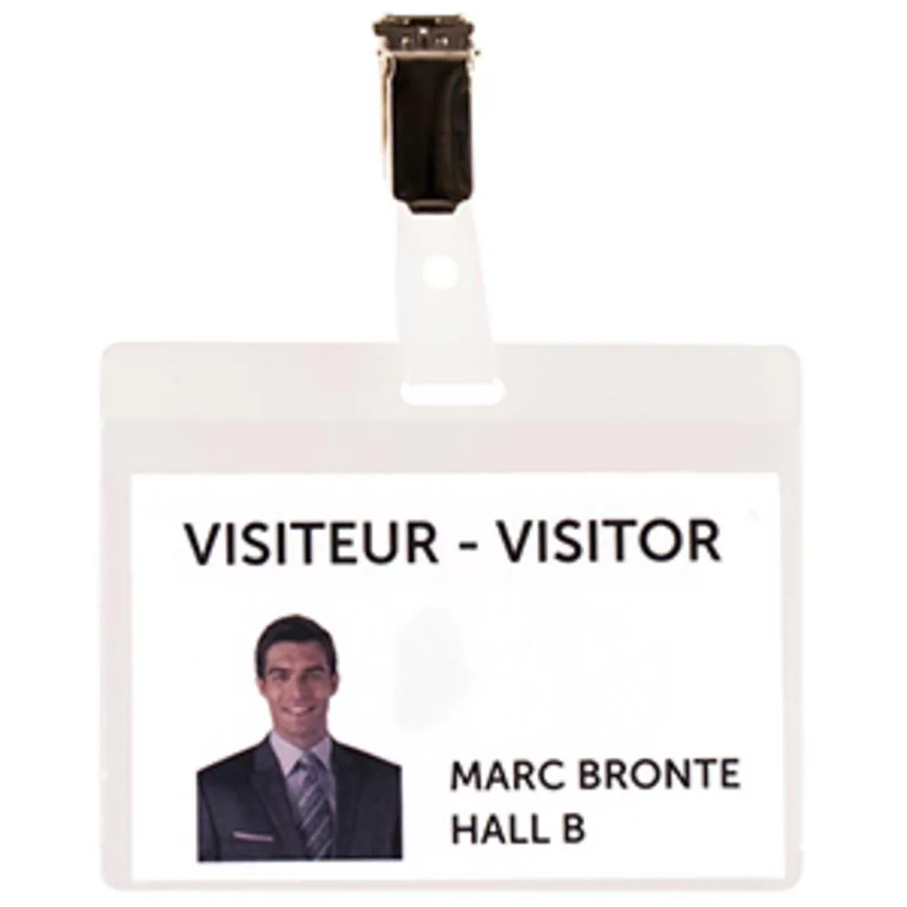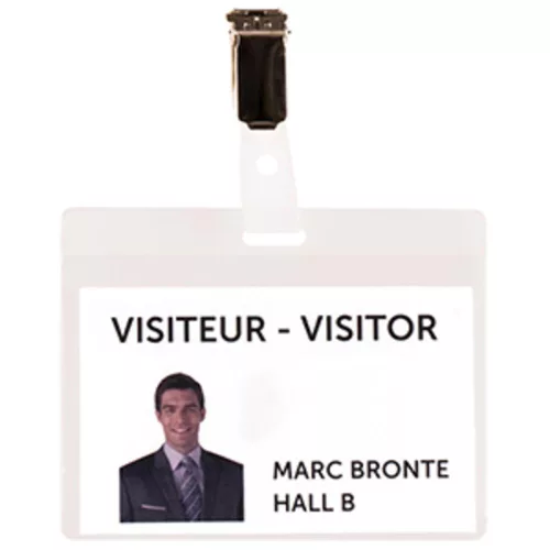 Névtábla, pvc, hxsz 82,5x103 mm, fekvő, átlátszó, rögzítőkapoccsal, 75 darabos csomag