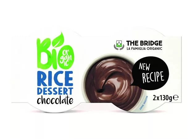 Növényi desszert, bio, 2x130 g, THE BRIDGE, rizs, csokis