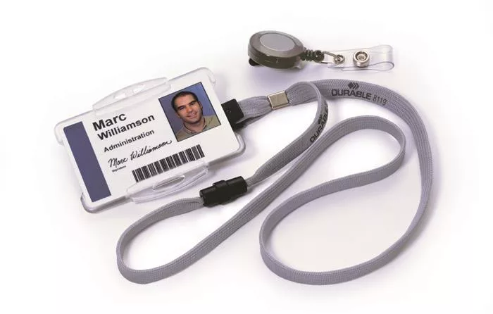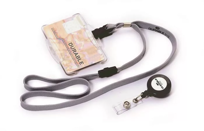 Textilszalag biztonsági zárral, mely kiold, ha a szalag elakadna -felhasználási terület: azonosító kártyákhoz, névkitűzőkhöz -a kivágással rendelkező kártyatartó műanyag klippel rögzíthető hozzá -szürke színű -anyag: textil -méret: 44 x 1 cm (ho x szé) Itt megtekinthető és letölthető a termékadatlap. Itt megtekinthető és letölthető a környezetvédelmi adatlap. Gyártó/első EU forgalmazó elérhetősége:  DURABLE Hunke & Jochheim GmbH & Co. KG Westfalenstrasse 77-79, D- 58636 Iserlohn, Germany info@durable.de www.durable.de