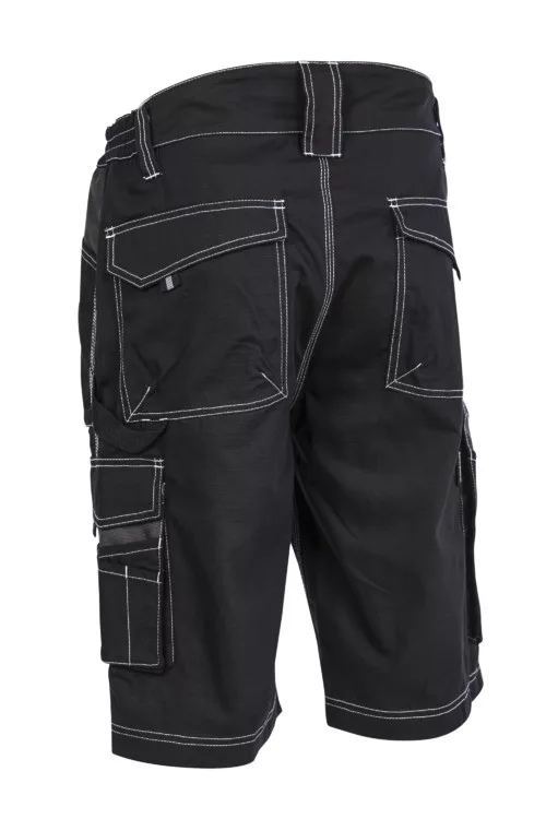 * 240 g/m2 vastag, 35% pamut + 65% poliészter kevertszálas ripstop (továbbszakadás biztos) alapanyag fekete színbenkopásálló Oxford 600D PES betétekkel megerősített az erősebben igénybe vett területeknél.* modern formai kialakítású bermuda, szerelők számára kifejlesztve* övbújtatók, biztonsági tripla varrás és megemelt derékrészgombbal és cipzárral záródó, gumírozott derék* két rávarrt oldalzseb,két tépőzáras fedett farzseb,egy cargo zseb több rekesszel,egy dupla rekeszes vonalzó zseb,kalapácstartó hurok