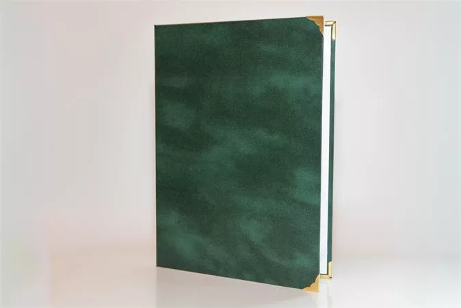 Oklevéltartó, A4, exkluzív, műbőr, 4 fém sarokkal, zöld