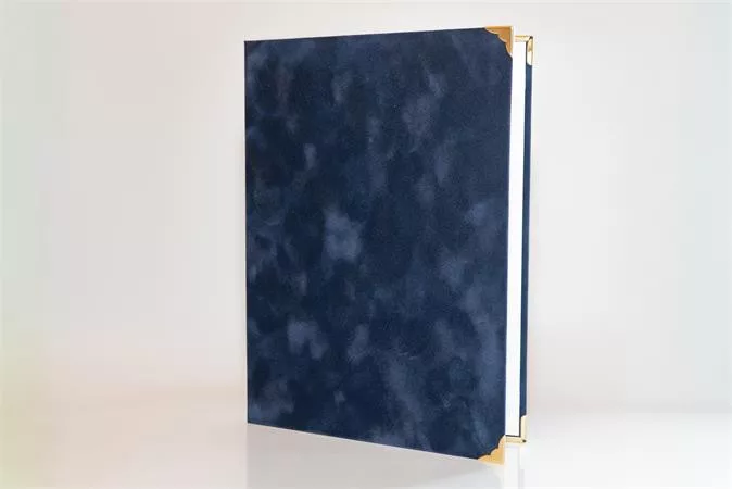Oklevéltartó, A4, exkluzív, plüss, 4 fém sarokkal, kék