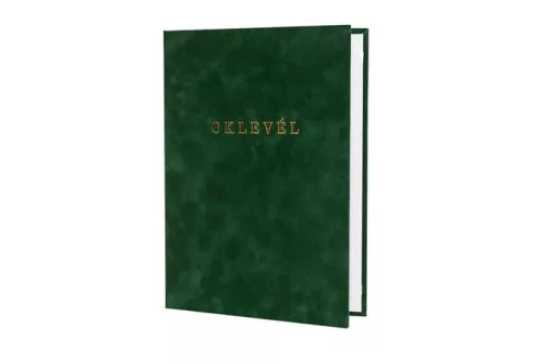 Oklevéltartó, A4, exkluzív, plüss, aranyozva, zöld
