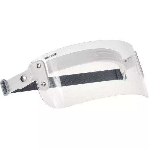 »Védőpajzs a szem és az arc védelmére a lassan repülő részecskék által okozott ütések ellen. A fejtartó nélküli pajzs egy elülső övből és egy 2 mm vastag, átlátszó PMMA-ból (2 mm plexiüvegből) készült látómezőből áll. Alkalmas minden típusú mechanikai megmunkálási, szerelési munkához vagy az egészségügyi szektorban végzett munkákhoz. Vényköteles szemüveg fölött viselhető. » Ütésvédelem: fokozott szilárdság S » Hőmérsékle: -5 °C / +55 °C » Pajzstartó anyag: RYKOLEN » Tömeg: 73 g » Fejpánt típusa: homlokszíj lágyított támasszal »EN 166 CE