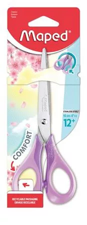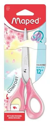 Olló, iskolai, 16 cm, rugalmas nyél, MAPED "Sensoft 3D", vegyes pasztell színek