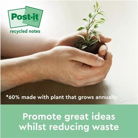 -a Post-it® újrahasznosított jegyzettömb 100%-ban újrahasznosított papírból készül