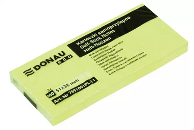 Öntapadó jegyzettömb, 51x38mm, 3x100 lap, DONAU "ECO", sárga