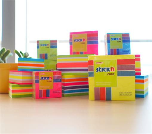 Öntapadó kockatömb, 76x76mm, 400 lap, STICK N, neon szivárvány