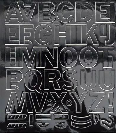 Öntapadós vinil tapétából hőpréssel stancolt betűlap.