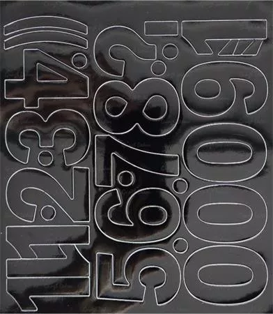 Öntapadós vinil tapétából hőpréssel stancolt számlap.