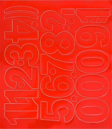 Öntapadós vinil tapétából hőpréssel stancolt számlap.
