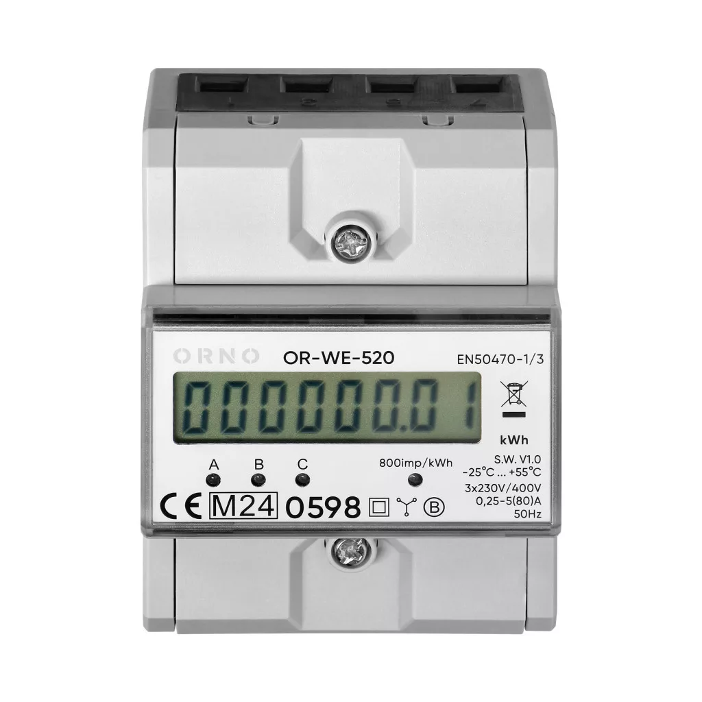 Orno háromfázisú digitális fogyasztásmérő sínre szerelhető 80A