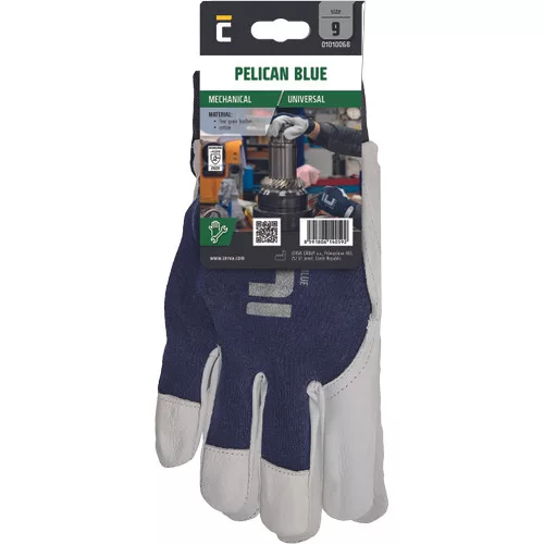 • kesztyű finom bárány színbőr tenyérrel, kék pamutszövet kézfejjel, tépőzáras mandzsettával