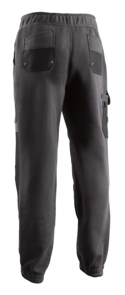 Dzsörzé: 65% PES / 35% pamut - 300 g/m2szálcsiszolt belső + Oxford 600D - sötétszürkeGumírozott derék húzózsinórralElasztikus bokarész5 zsebOxford térderősítésKontraszt színű felületekSportos szabás