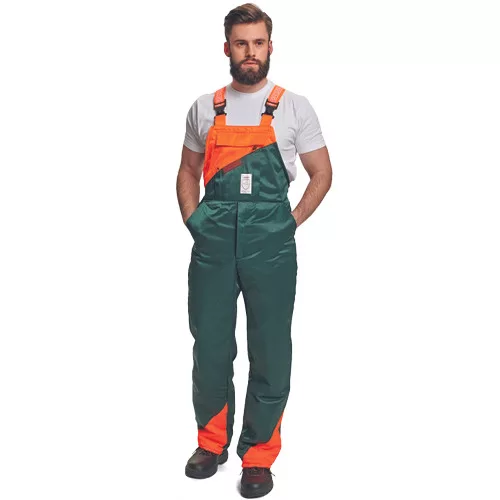 • álítható hossz • záródás muanyag csatttal • mellzseb zipzárral • záródás oldalról zipzárral és gombokkal • hátsó zseb tépozáras hajtókával • zseb collstocknak • belso vágás ellen véso réteg elöl a deréktól a bokáig