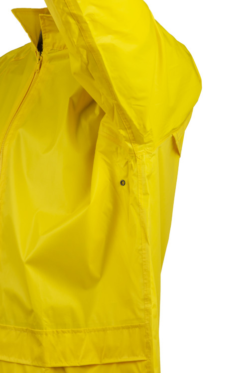 * Lágy PVC-vel borított 100% Poliészter / 200 g/m2 /170T* KABÁT: Leragasztott (hegesztett) varrások, rejtett kapucni zsinórral, álló gallér, cipzáros záródás, patenttal állítható mandzsetta, 2 fedett oldalzseb, zsinóros aljrész* NADRÁG: hegesztett varrások, gumírozott derékrész, sliccelt zsebnyílás, patenttel szűkíthető szárak