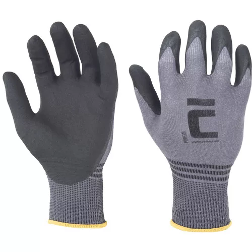 • varrat nélküli nylon és spandex kesztyű speciális nitrilhab mártással • kiváló tapadás száraz és olajos körülmények között • érintőképernyőbarát • jó légáteresztő képesség • 30 %-kal kevesebb energia és 63 %-kal kevesebb CO2 kibocsátás a gyártási folyamat során, összehasonlítva a hagyományos nitrilbe mártott varrat nélküli kesztyűkkel • rendkívüli védelem a opás ellen, több mint 19.500 ciklust kibír • tűfinomság: 15 gg