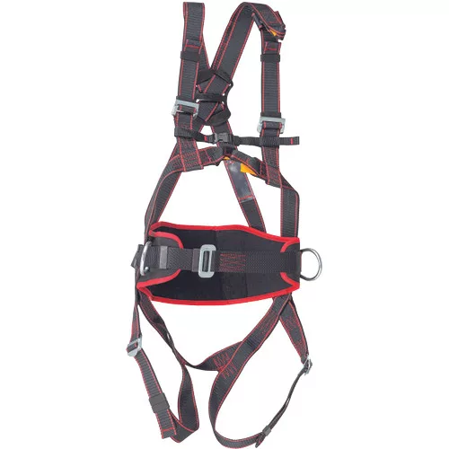 »M-XL Széles alkalmazási körű, univerzális típusú zuhanásgátló heveder hátsó és elülső felfüggesztő elemmel, oldalsó gyűrűkkel felszerelt helyzetbeállító derékövvel, valamint állítható váll-, illetve combhevederekkel. A hátsó felfüggesztő elemhez vezető heveder meghosszabbított. Megfelel az EN 361 és EN 358 szabványoknak (CE 0082).