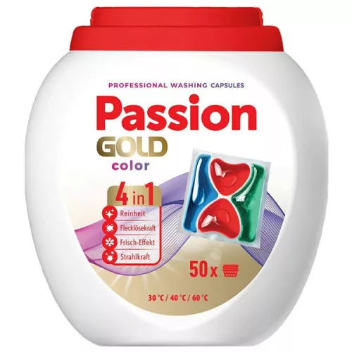 Passion Gold Color mosókapszula. Kiváló minőségű, nagyon jó ár/érték arányú termék. Elsősorban színes ruhákhoz használható. Németországban kimondottan népszerű.