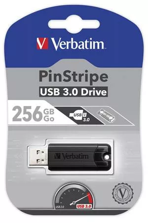 Pendrive, 256GB, USB 3.2, VERBATIM "Pinstripe", fekete