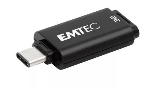 Pendrive, 32GB, USB-C 3.2, EMTEC "D400 Type-C", fekete