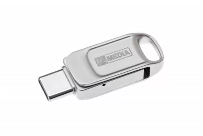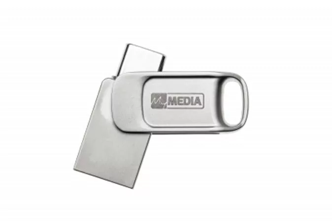Pendrive, 64GB, USB 2.0 + USB-C, alumínium ház, MYMEDIA "Dual" (by VERBATIM)