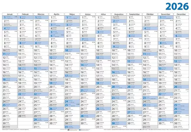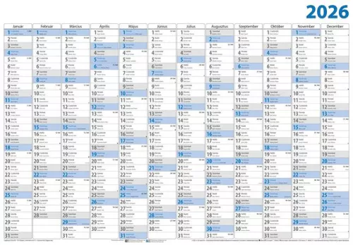 Plakátnaptár -méret: 980 x 680 mm -fehér lapok -szürke - kék nyomat -5 db/csomag (karton)