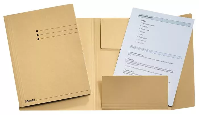 3-pólyás mappa dokumentumok tárolásához az irodában, otthon, iskolában egyaránt tartós használat a vastag, erős karton alapanyagnak köszönhetően kiváló minőségű, 100%-ban szűz rosttartalmú, FSC minősített karton igényes kivitelű, szupererős prespán (enyhén fényes) karton alapanyagból készült kapacitás: kb 150 lap