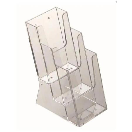 Az 1/3 A4 méretű, asztalra és falra is helyezhető prospektustartó univerzális és praktikus megoldás többféle szóróanyag egyidejű kihelyezésére.