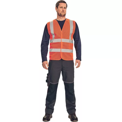 • lélegző jólláthatósági mellény fényvisszavető csíkokkal, EN 471: 2,2 • 4 db 5 cm széles fényvisszavető csíkkal • tépőzáras kivitel, hálós anyagból