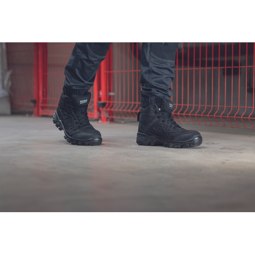 Könnyű biztonsági lábbeli, amely az EN ISO 20345:2022 szabvány szerint S3 S minősítéssel rendelkezik. A nagy TPU mintázatú talp stabilitást és kiváló csúszásgátlást biztosít még egyenetlen, durva felületeken is. A Lycra anyagból készült textil felsőrész, a kompozit orrmerevítő és az átszúrás elleni középtalp rendkívül könnyűvé teszik a lábbelit. A lábujjrész megerősített, kopásálló kialakítású.