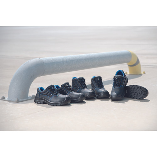 • biztonsági bakancs orrvédővel, acél lábujjvédővel és átszúrás ellen védő köztalppal • antisztatikus, csúszásbiztos, üzemanyagálló, nagysűrűségű PU talp, energiaelnyelő sarok• marhabőr felsőrész