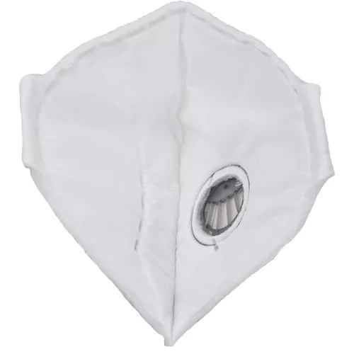 »Kilégző szeleppel ellátott összehajtott félálarc. Az LMK/MEH 10-szereséig nyújt védelmet szilárd részecskék és vizes aeroszolok ellen, FFP2 NR.