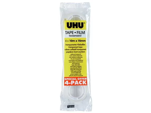Ragasztószalag, 15 mm x 10 m, 4 db, UHU, átlátszó