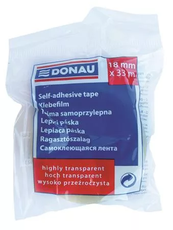 Ragasztószalag, 18 mm x 33 m, DONAU, átlátszó