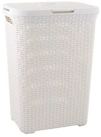 Rattan hatású szennyestartó, 60l, CURVER, törtfehér