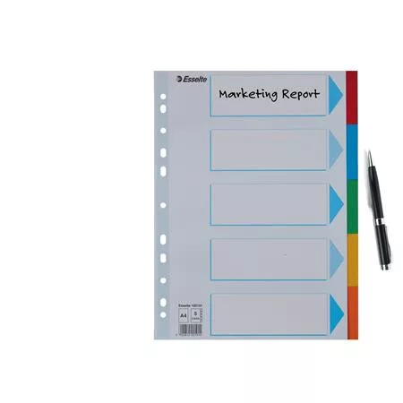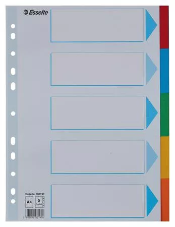 Regiszter, karton, A4, 5 részes, írható előlappal, ESSELTE "Standard", színes