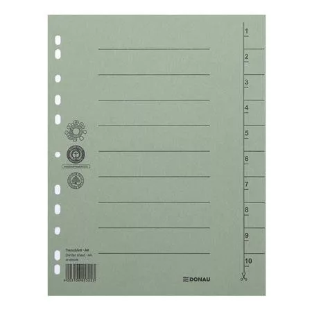 - lefűzött dokumentumok kategorizálására - színes elválasztólapok - újrahasznosított, 250 g/m2 kartonból készült - 100 db/csomag - 4 lefűzőlyuk - méret: 235x300 mm
