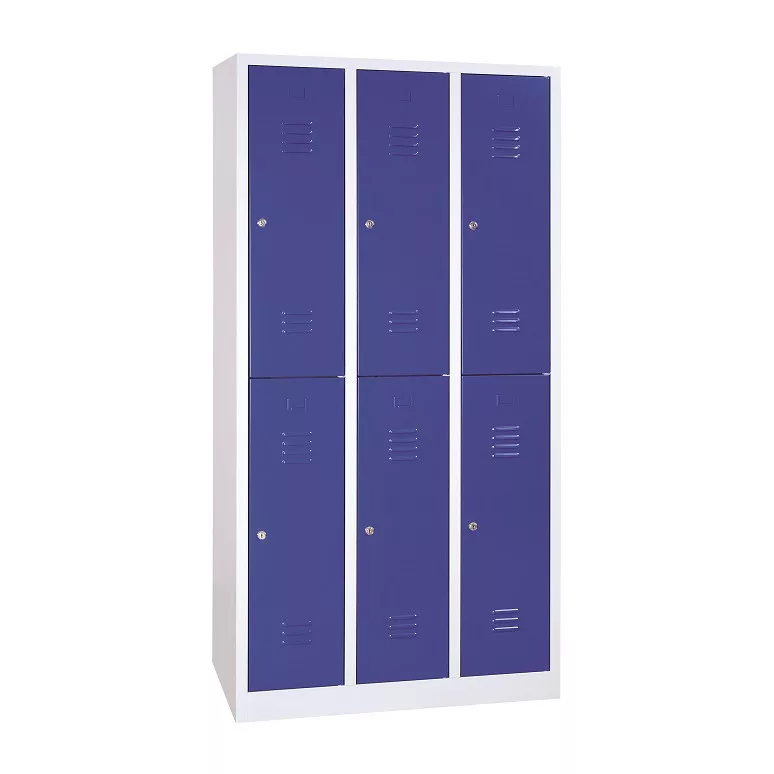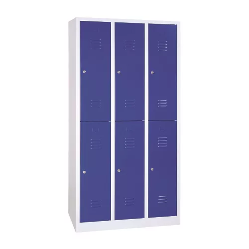 Rövidajtós acél öltözőszekrény, 6 rekeszes, 1950mmx1200mmx500mm, Szürke/kék