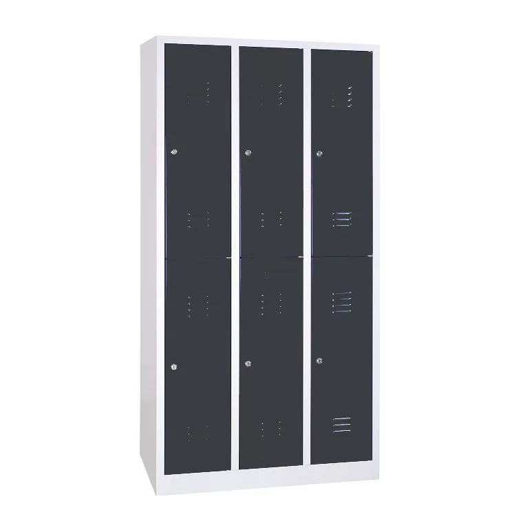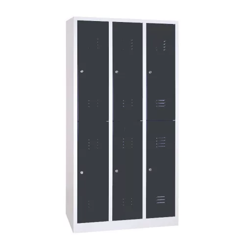Rövidajtós acél öltözőszekrény, 6 rekeszes, 1950mmx900mmx500mm, Szürke/antracit