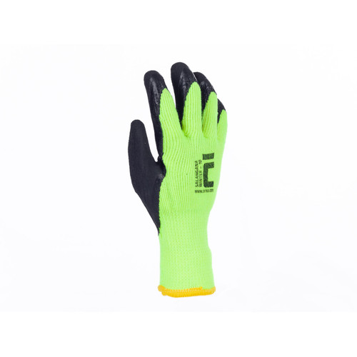 • szintetikus fonalból kötött, bélelt, varrat nélküli védőkesztyű mikroporózus és légáteresztő latex réteggel a tenyéren és az ujjakon, valamint rugalmas kötött mandzsettával