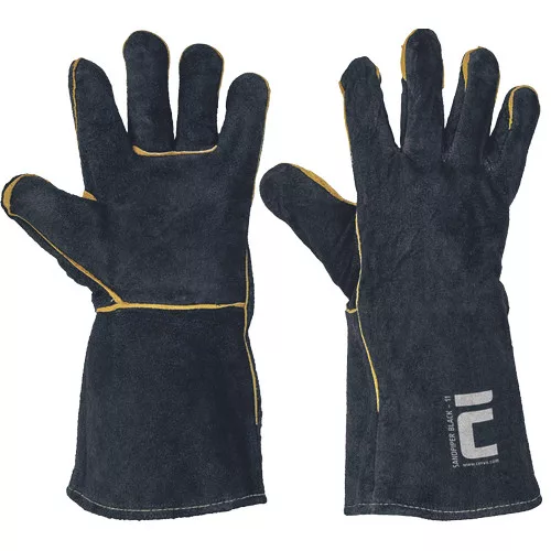 • 35 cm hosszú, marha hasított bőr kesztyű pamut béléssel és fedett varratokkal • Tanúsítvány: hegesztés - A típus