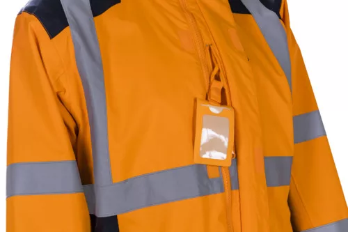 Sangaku Hi-Víz narancs ripstop védőkabát* Ripstop Oxford: 100% poliészter – 300D + PU membrán* Hálós bélés: 100% PES – 75 g/m²* Vízállóság: 3000 mm, légáteresztő képesség: 5 000 g/m2/24h* 5 cm széles fényvisszaverő csíkok – varrott és mikrogyöngyös technológia - 2 – 2 a vállon, testen és a karokon, kontraszt színek a vállon, oldalt és a mandzsettánál* Fedett ragasztott varrások, gallérba rejtett viharkapucni* Tépőzáras hajtókával fedett kétutas cipzár állvédővel, álló gallér* Tépőzáras mandzsetta és zsinórral állítható aljrész* 2 cipzáras oldalzseb, 1 Napóleon zseb, 2 tépőzáras belső zseb + fülhallgató hurok* Csatlakoztatási lehetőség KAZAN dzsekihez és NEBULO softshellhez* Szitázható, 25 mosás