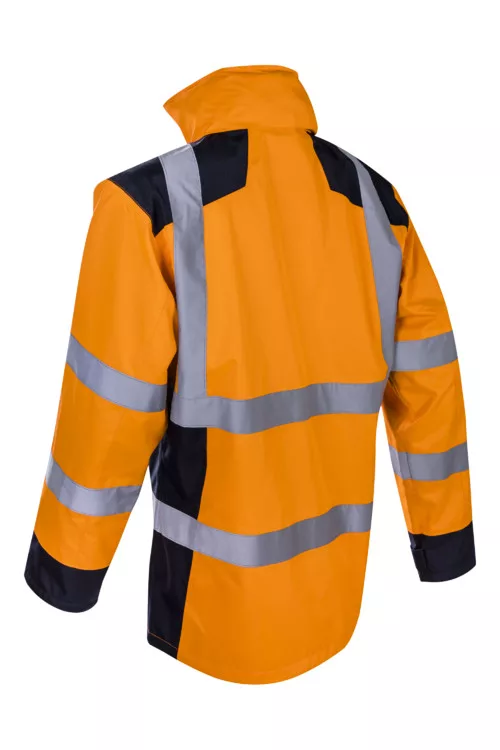 Sangaku Hi-Víz narancs ripstop védőkabát* Ripstop Oxford: 100% poliészter – 300D + PU membrán* Hálós bélés: 100% PES – 75 g/m²* Vízállóság: 3000 mm, légáteresztő képesség: 5 000 g/m2/24h* 5 cm széles fényvisszaverő csíkok – varrott és mikrogyöngyös technológia - 2 – 2 a vállon, testen és a karokon, kontraszt színek a vállon, oldalt és a mandzsettánál* Fedett ragasztott varrások, gallérba rejtett viharkapucni* Tépőzáras hajtókával fedett kétutas cipzár állvédővel, álló gallér* Tépőzáras mandzsetta és zsinórral állítható aljrész* 2 cipzáras oldalzseb, 1 Napóleon zseb, 2 tépőzáras belső zseb + fülhallgató hurok* Csatlakoztatási lehetőség KAZAN dzsekihez és NEBULO softshellhez* Szitázható, 25 mosás