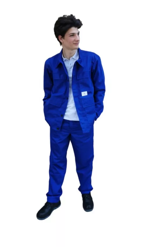 * királykék derekas öltöny, 245 g/m2 kopásálló, sávoly kötésű, 65% poliészter, 35% pamut alapanyag* folyadéklepergető védőruházat, korlátozott védelmet nyújt kisnyomású vagy fröccsenő, folyékony vegyszerek ellen (pl. kénsav, lúg, o-Xilol és butanol) – 6. típusú és PB (6) típusú védőeszköz* KABÁT (5SSKA220): dzseki fazonú, hosszított derék, rejtett gombolás, négy rávarrt, tépőzáras zsebfedővel rendelkező biztonsági zseb, állítható mandzsetta* DERÉKNADRÁG (5SSDN220): enyhén szűkülő szárú, rejtett gombolás, 6 erősített övtartó, két függőleges nyílású biztonsági foltzseb