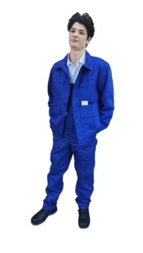 * királykék melles öltöny, 245 g/m2 kopásálló, sávoly kötésű, 65% poliészter, 35% pamut alapanyag* folyadéklepergető védőruházat, korlátozott védelmet nyújt kisnyomású vagy fröccsenő, folyékony vegyszerek ellen (pl. kénsav, lúg, o-Xilol és butanol) – 6. típusú és PB (6) típusú védőeszköz* FOLYÉKONY VEGYSZEREK ELLENI MELLESÖLTÖNY* KABÁT (5SSKA220): dzseki fazonú, hosszított derék, rejtett gombolás, négy rávarrt, tépőzáras zsebfedővel rendelkező biztonsági zseb, állítható mandzsetta* MELLESNADRÁG (5SSMN220): állítható, gumibetétes vállpánt, magasított oldal, gumírozott hátrész, két függőleges nyílású biztonsági foltzseb és a mellrészen egy tépőzáras zsebfedővel rendelkező biztonsági zseb