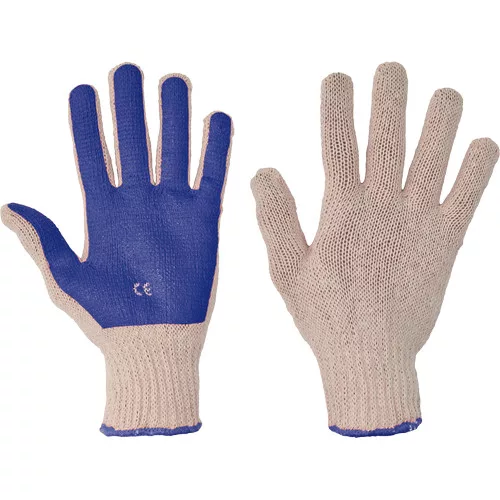 • kötött, varratmentes pamut kesztyű • színes, PVC mártott tenyér és ujjak • rugalmas mandzsetta