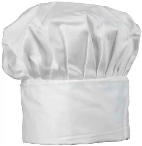 * magas szakácssapka bőségráncokkal* szín: fehér * 190 g/m2 pamut/poliészter alapanyag* méret: univerzális